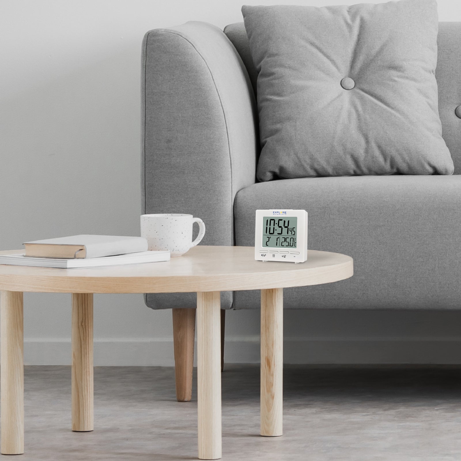 The Explore Scientific Mini RC Alarm is a great travel companion. The radio control function automatically sets the time in 12- or 24-hour format. In addition to the date and month, the backlit display informs about the room temperature in C ° / F °. The dual alarm function allows you to set two independent alarms and a snooze function.