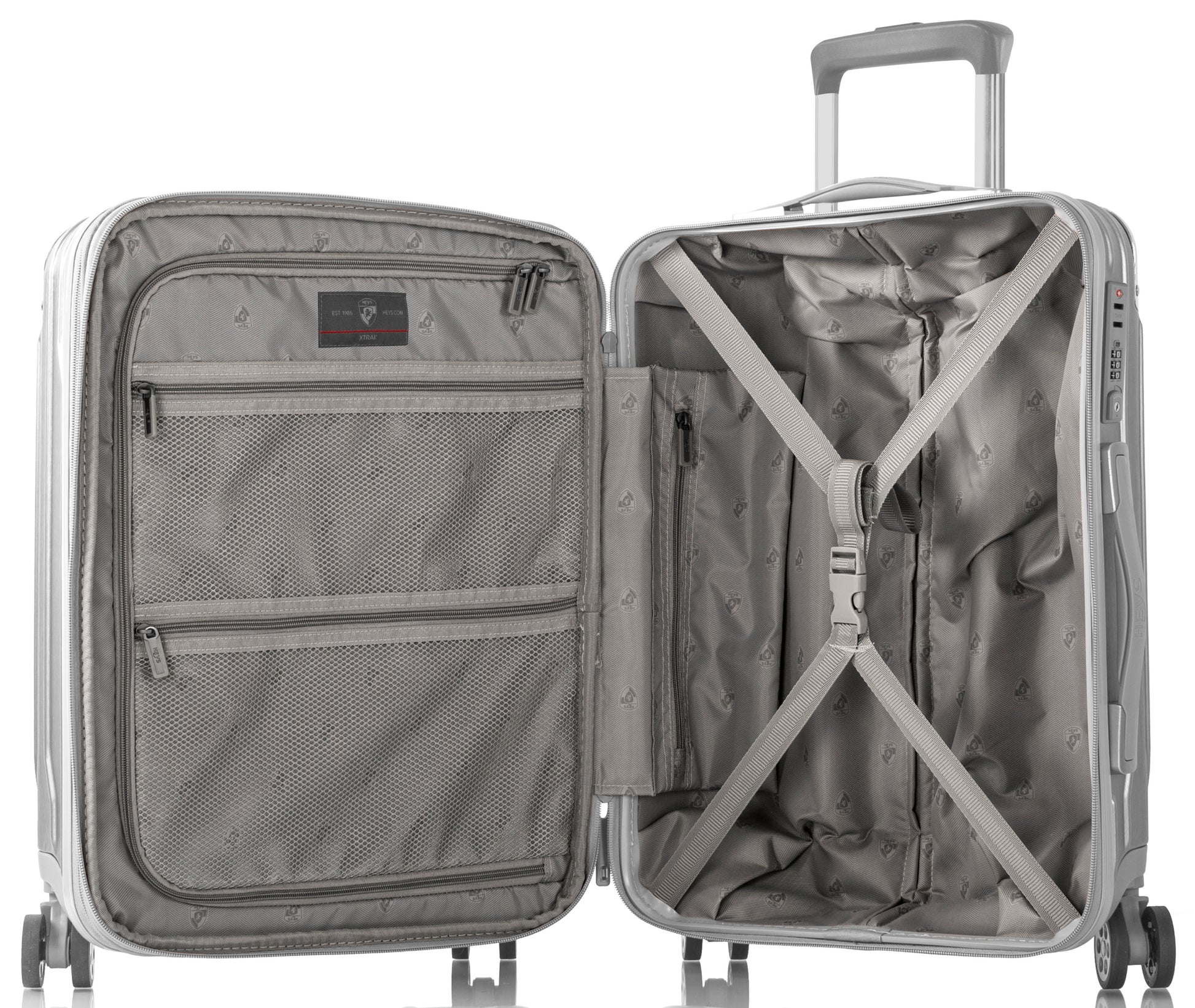 Hand luggage Country of registration of the brand: Canada Country of origin for product: China Warranty: 12 months Dimensions: 53 x 39 x 23 cm Color: Silver Weight: 3.7 kg EAN code: 665556028313 Item: 925198 Brand: Heys Size: Small (up to 50 l) Body material: Polycarbonate Package weight: 4.1 kg Package dimensions: 56 x 43 x 26 cm