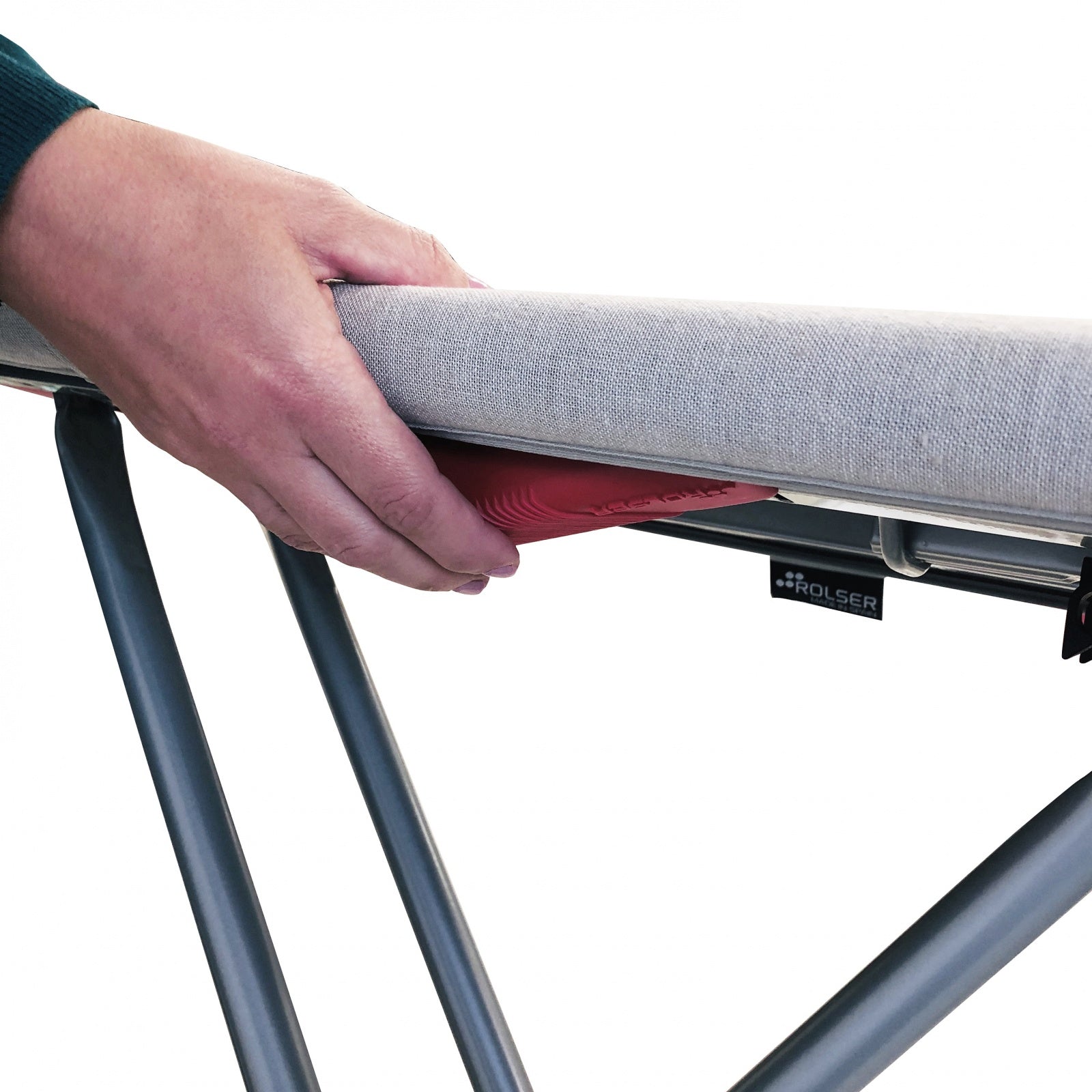 The Rolser K-UNO handbag is a high-acid 100% Spanish product! The model is adapted for washing various types of white goods, equipped with a stand for sanding or a medium-sized steam generator. The wide working surface of the board allows you to easily iron the white of various shapes and large sizes, be it curtains or double bedding sets.