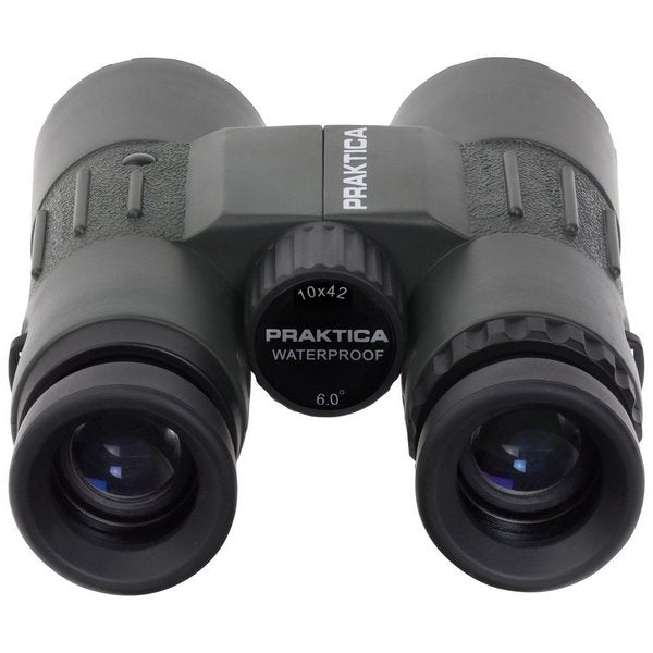 Binoculars Praktica Discovery 10x42 WP. The Discovery series of binoculars offers maximum capabilities at a minimum cost. Such optical and design features as multi-coated optics, BAK4 glass prisms, long pupil removal, nitrogen filling, high degree of tightness, twist-and-slide eyecups and lens caps with convenient fastening leave this model unrivaled in its price segment.