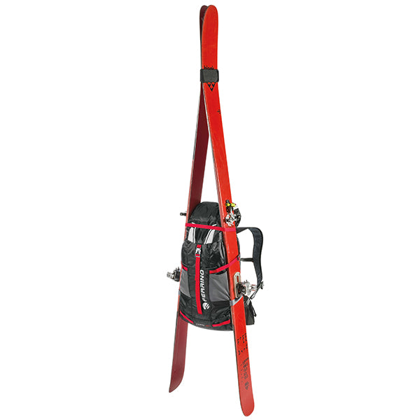 The Ferrino Lynx backpack series is designed primarily for professional mountaineering and ski mountaineering and ski touring competitions, as well as for other skiing disciplines. Ferrino Lynx is thought out to the smallest detail and has a number of design features that are unique to these backpacks, such as a specially designed three-point ski mount, a quick release system for the backpack, a loop for coupling and towing a second skier, a special compartment for crampons and compartments with locks for the handle of an avalanche shovel and an avalanche probe. In addition to specialized design solutions, Ferrino Lynx 30 Black is fully compatible with a hydration system, has a comfortable hip belt and a chest strap with a whistle, is equipped with extended side straps for fixing skis or other equipment, has external loops for carabiners and removable locks for an ice axe and trekking poles. The internal space is optimized for placing and fixing various equipment. Small items can be placed in open side pockets made of elastic mesh or in closable pockets on the flap and on the waist belt. A large front pocket is designed to accommodate the avalanche shovel itself. The backpack's volume can be adjusted with an exhaust valve, the partition between the main compartment and the crampon compartment can be unzipped, thereby increasing the volume of the main compartment. Ferrino Lynx 30 Black has a low weight, thanks to the use of lightweight material, a ventilated back, harnesses and belt, reflectors on the front, and is also equipped with reliable fittings from the best manufacturers.