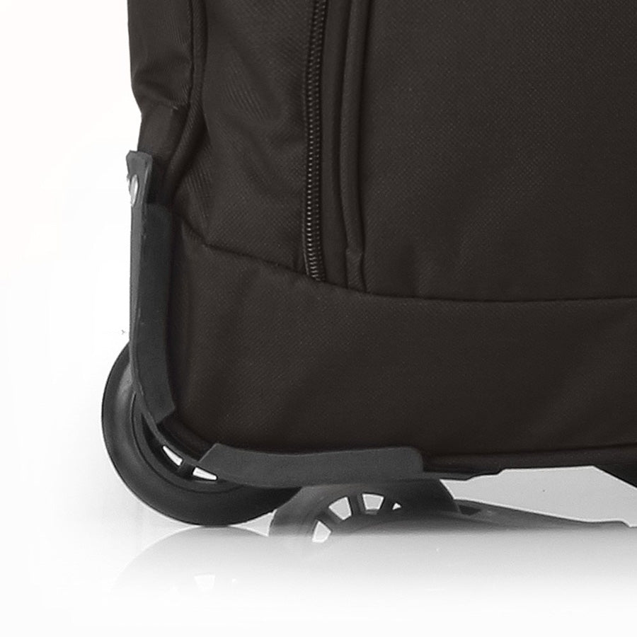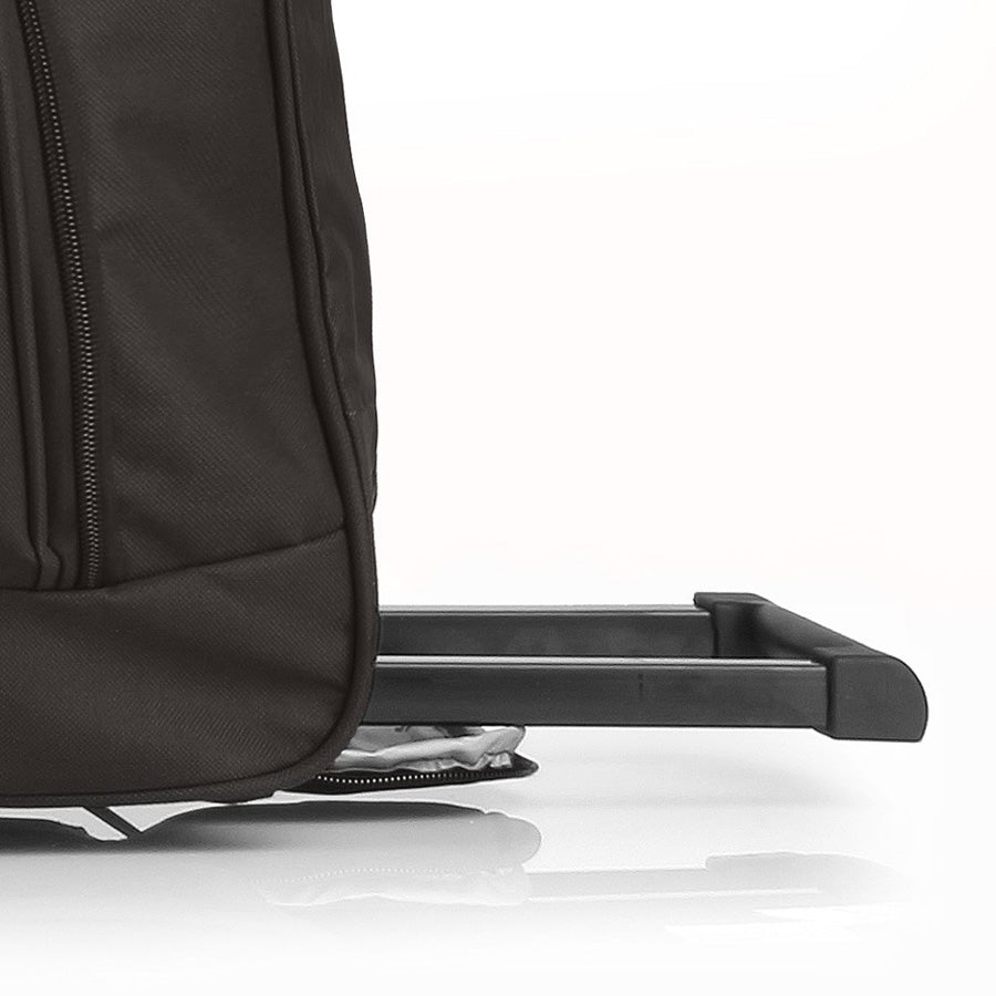 The bag is equipped with a pair of reliable roller wheels. The wheels are made of high-temperature thermoplastic polyurethane (TPU). The material has a strength comparable to plastic, flexibility of silicone, and also has increased resistance to temperature changes. A distinctive feature of the TPU wheels is the reduction of noise to a minimum when rolling the bag on an uneven surface. Due to its resistance to abrasion, the wheel material has a long service life.