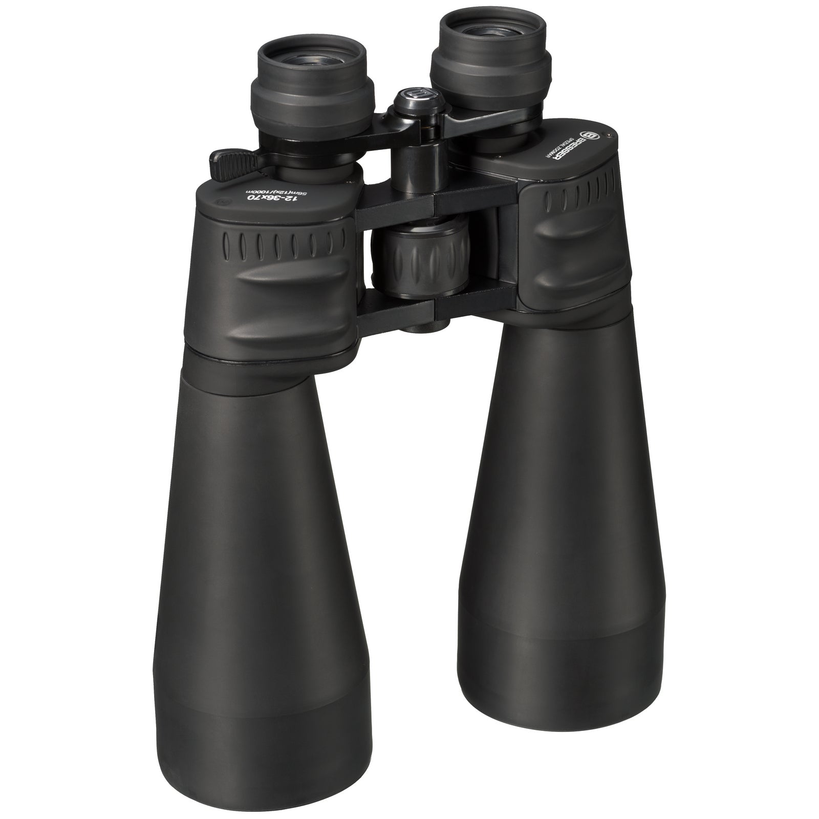 The flexible, shock-resistant body of the BRESSER SPEZIAL 12-36x70 binoculars has a hermetically sealed design that resists penetration of moisture and condensation on the internal optical surfaces. The specially wash-resistant, anti-bleeding, multi-globular coated green lens coating protects against smudges and absorbs maximum light penetration (up to 95%). The prisms, made from high-acidity, low-dispersity optical glass BAK4, allow you to capture the most accurate and contrasting image on the eyepiece. With additional zoom, you can scale images within a range of 12x to 36x. The binoculars have a better central focus.
