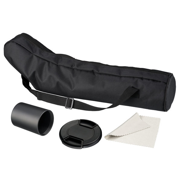 Focusing is based on the appearance of a handwheel with a small diameter, rotated in a central position, which is easy to control, regardless of which hand you use to focus. For greater comfort, avoiding stiffening of the swivel-and-hanging headpiece. The visible hood will provide reliable protection against sun glare and fallout. The lens and eyepiece caps are reliably fixed in their places and will definitely not be lost in a crash.