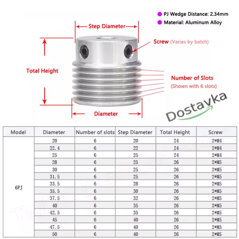 6PJ poly V-belt drive transmission pulley on 8mm shaft for key and pins. Widely used in belt transmissions of household and commercial equipment