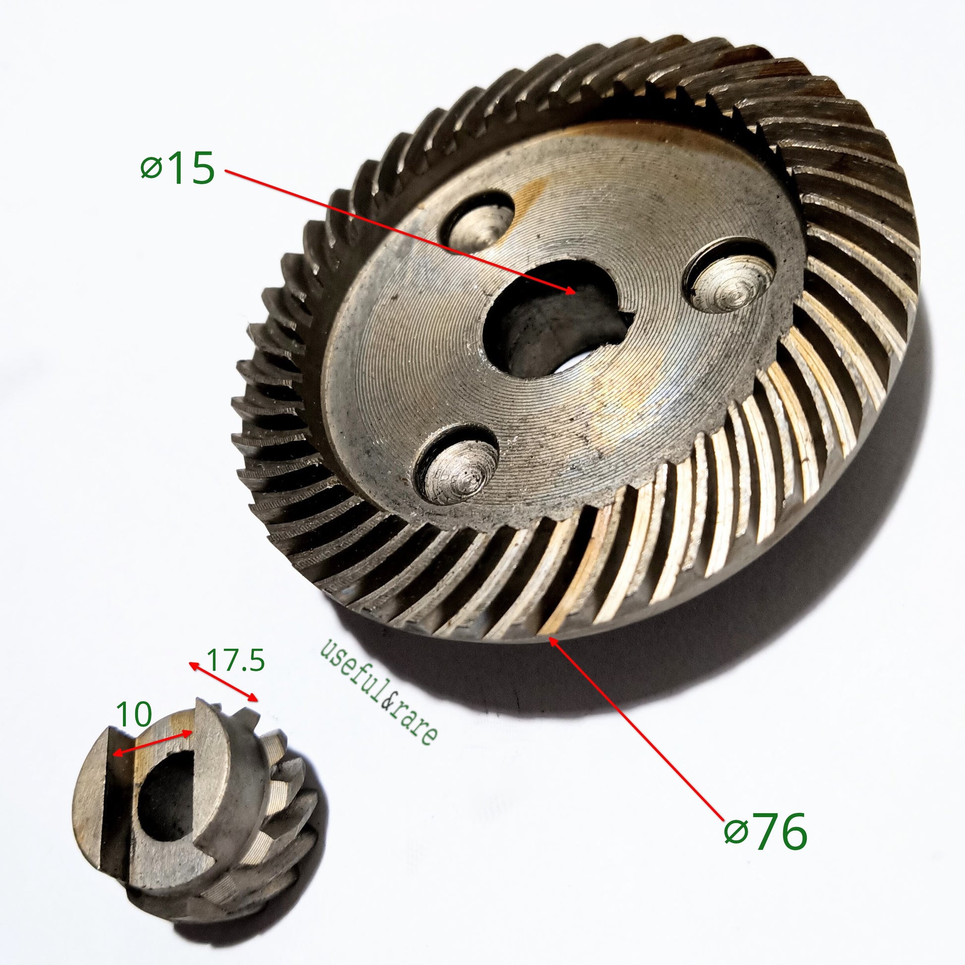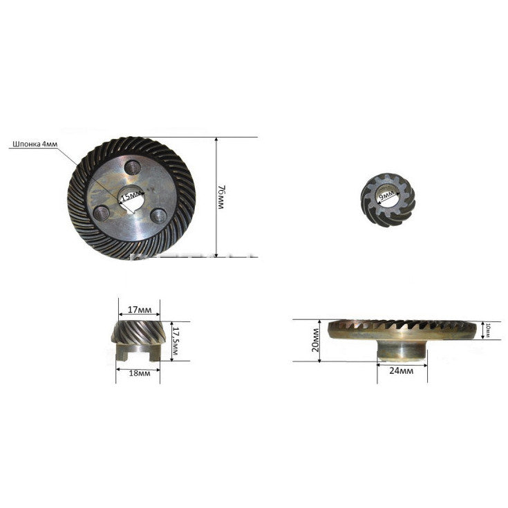 Gears (pair) of the angle grinder Greapo, Einhell 230 (d15*74 d9*h17.5)