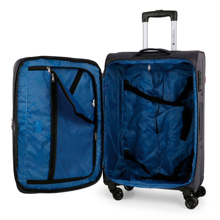 With a combination lock Country of registration of the brand: Spain Country of origin for product: China Warranty: 24 months Dimensions: 68 x 43 x 26 cm Color: Black Weight: 3.3 kg Material: 100% Polyester Barcode: 8425126170765
