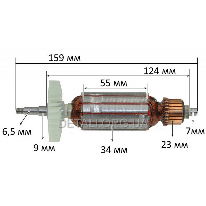Motor armature for angle grinder Stark AG 960, Elprom 125 1000W, Zenith ZUSH-125/1250 (159*34 gear landing 6.5mm)