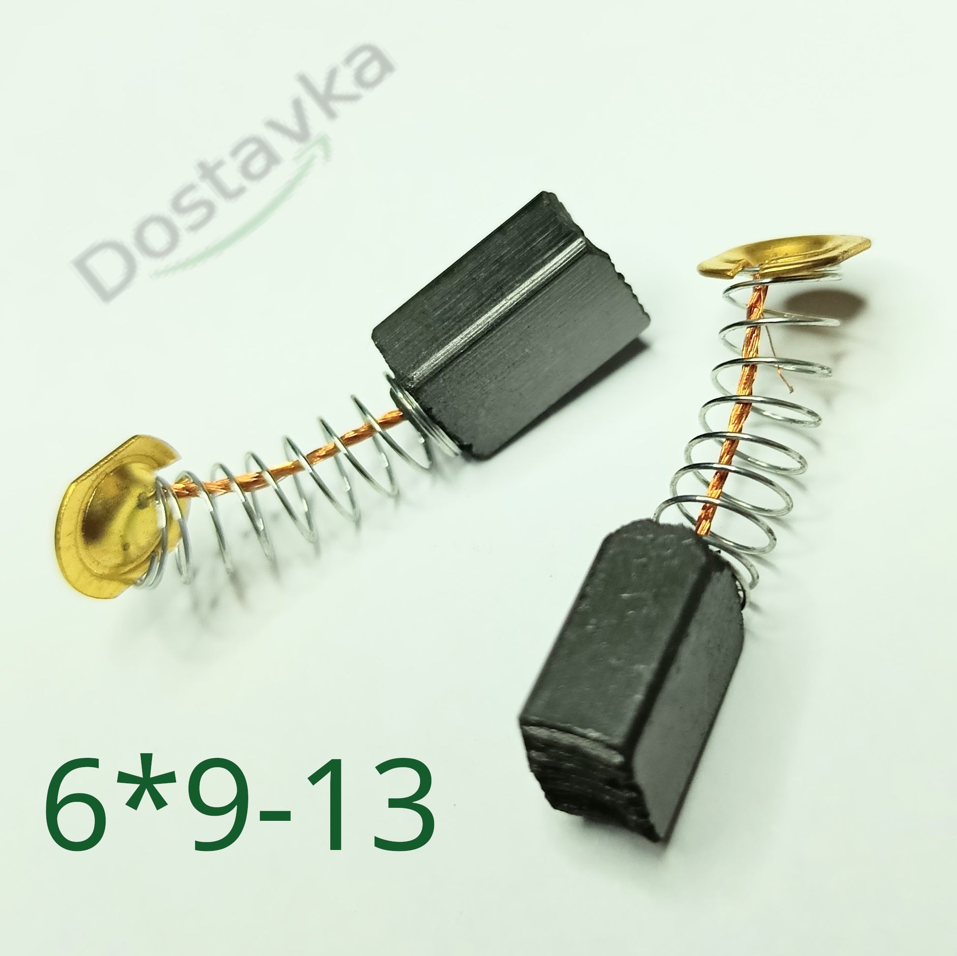 A set of 6*9 (*13) spring-loaded brushes with a heel for the Forte, CMI, IZH MASH su-1100 E angle grinders, Kirby vacuum cleaner, and Taiga PD-185-1500 circular saw, heel diameter ~9 mm