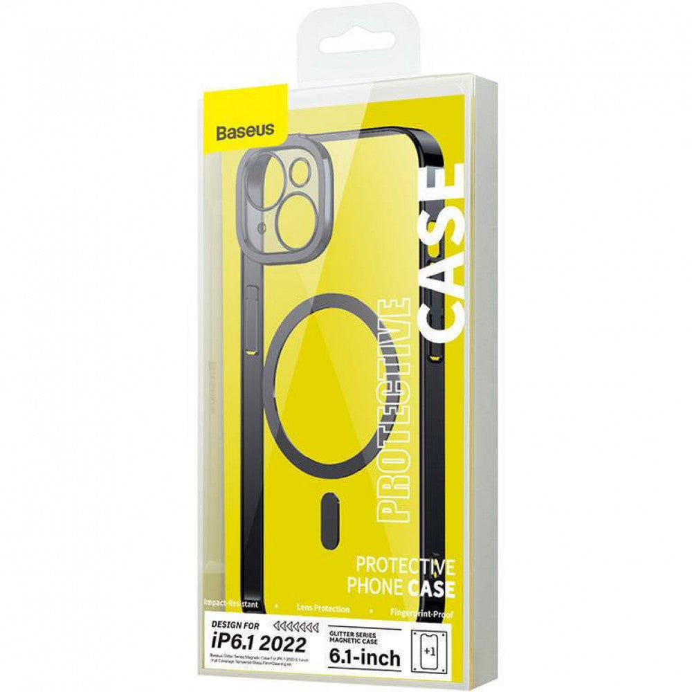 Baseus (ARMC010201) Glitter Series Magnetic Case for iP 14 Plus (Pack of 1 with full coverage tempered glass screen protector and cleaning kit), Black