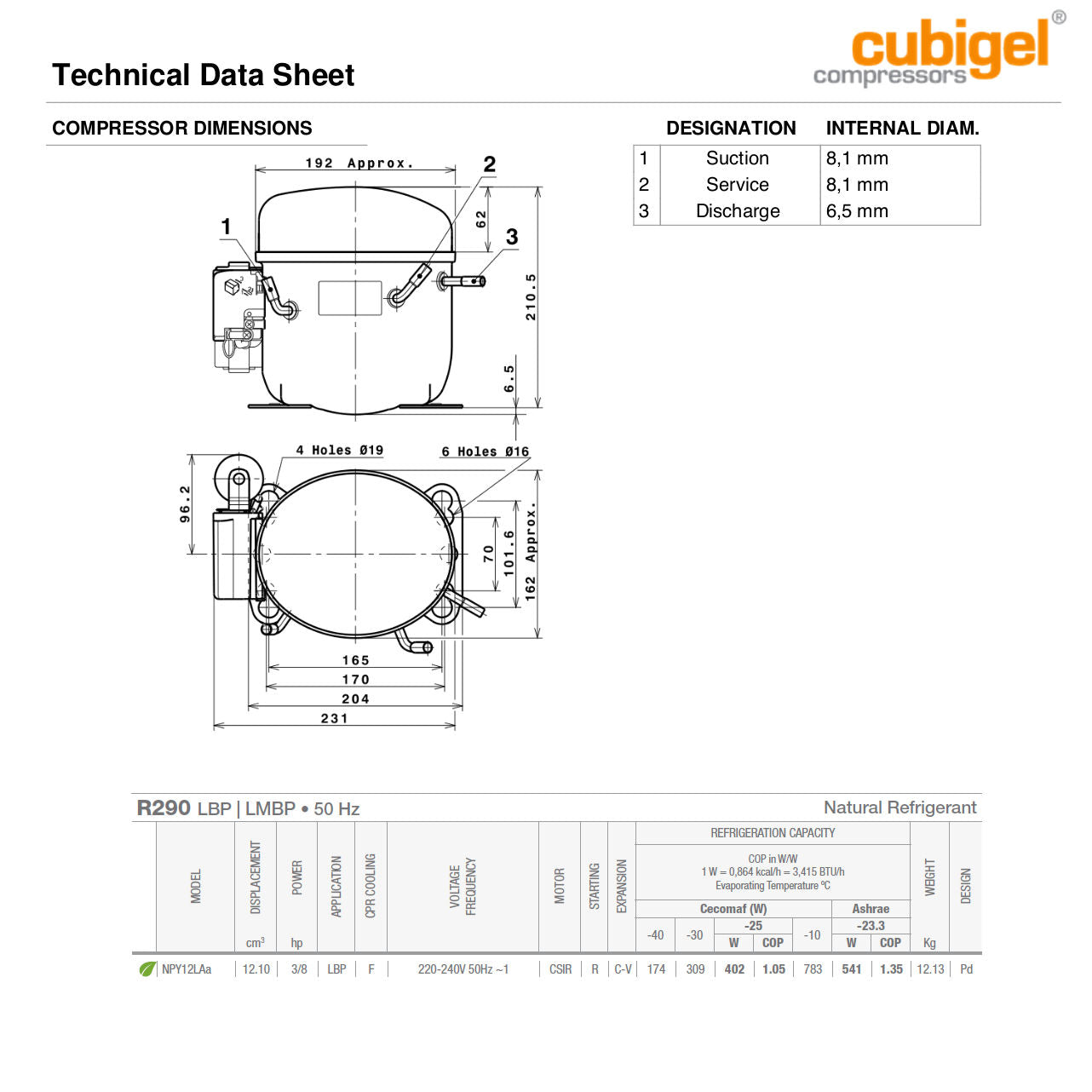 Hermetic Compressor Cubigel NPY12LAa R-290 (ACC):