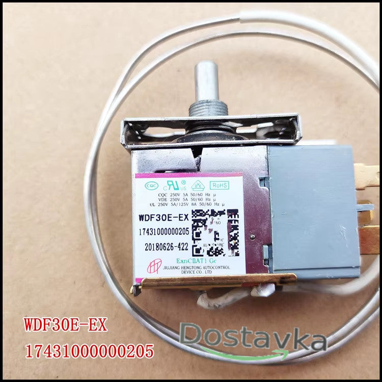 Temperature controller WDF30E-EX (WDFE28Z-L2) for refrigerator with freezer Delfa DTFM-140/ Midea 17431000000205. Capillary length 88-90 cm