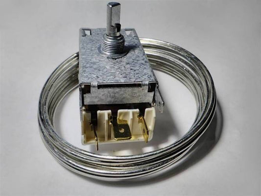 Thermostat (temperature regulator) RANCO K57-L2829 (Indesit C00851095, Indesit C00851089), capillarye tube 2.5 m long, replaceable with T145/2.5/, RANCO K57L2819, t° from -29°C to -18°C ( -15.. .-21; -25...-33°C ), Nord DX-428-7, for repair freezer Giochel 101-2 MKS-120, refrigerator Calex, Stinol 103E, Indesit, Ariston ) with the super freezing function, you can place it instead of the K54-L2095, without using super freezing, in the freezer compartment, where the green signal light is constantly on.