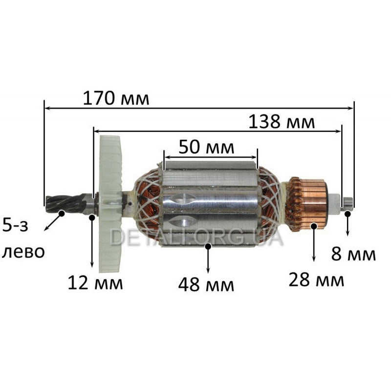Motor armature (rotor) (170*48 5-teeth left) for barrel hammer drill Einhell 1500, Zenit ZPP-1700 Profi.