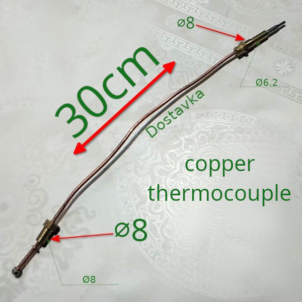 Copper Thermocouple with thread ø8 + ø8, rod 6.2 mm, for using in many different automatic gas boilers, hob and ovens.
