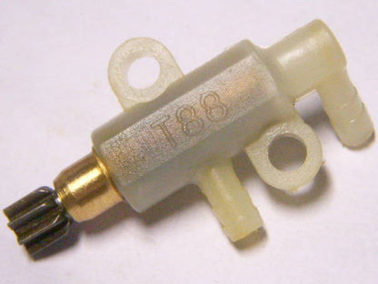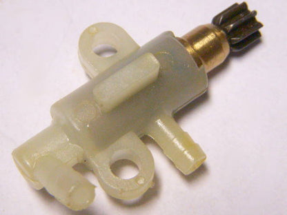 Electric saw chain lubrication plunger oil pump. Gear drive: teeth 8, diameter 7mm, Full height: ~44mm. Compatible with Omax, Zenit CPL-355/1600, Qmak GreenWood t88, Craft-Tec EKS-1500, Taiga-PC1500, 2000, GreenWorks GD40CS40 G-MAX 40V DigiPro (20312) electric chain saw