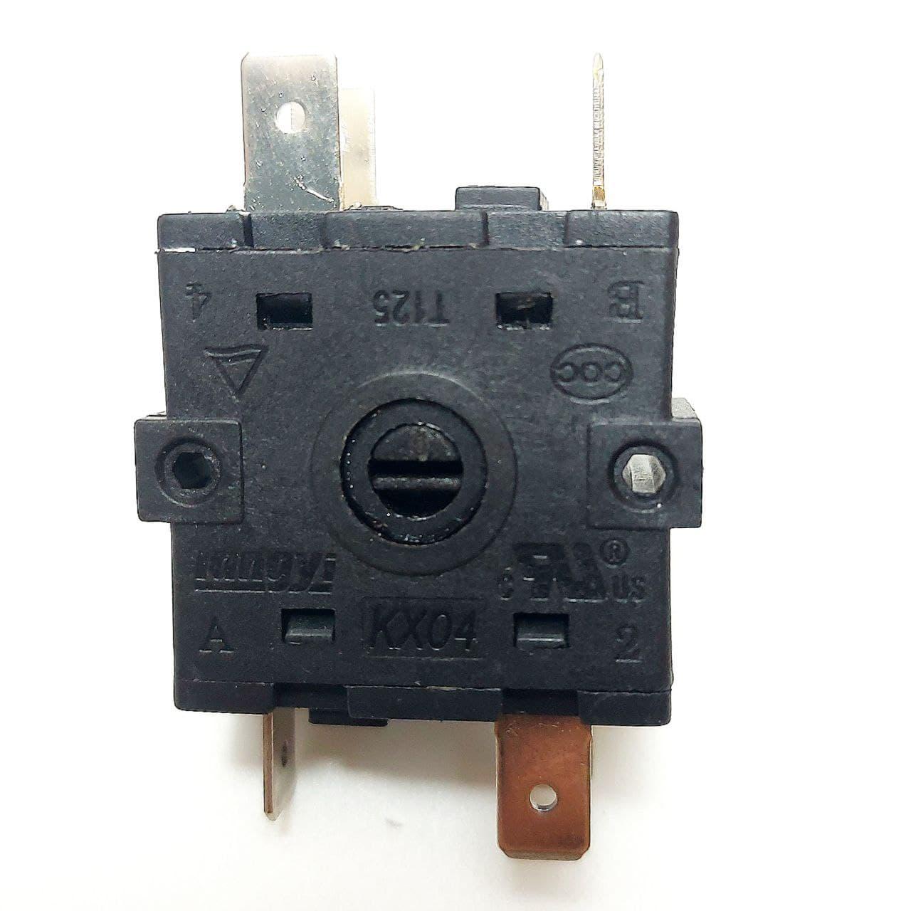 4-position switch Langyi KX04 (15A/250V T125) with contacts 3+3. Used in coffee machines, electric fireplaces, heaters, thermo pots