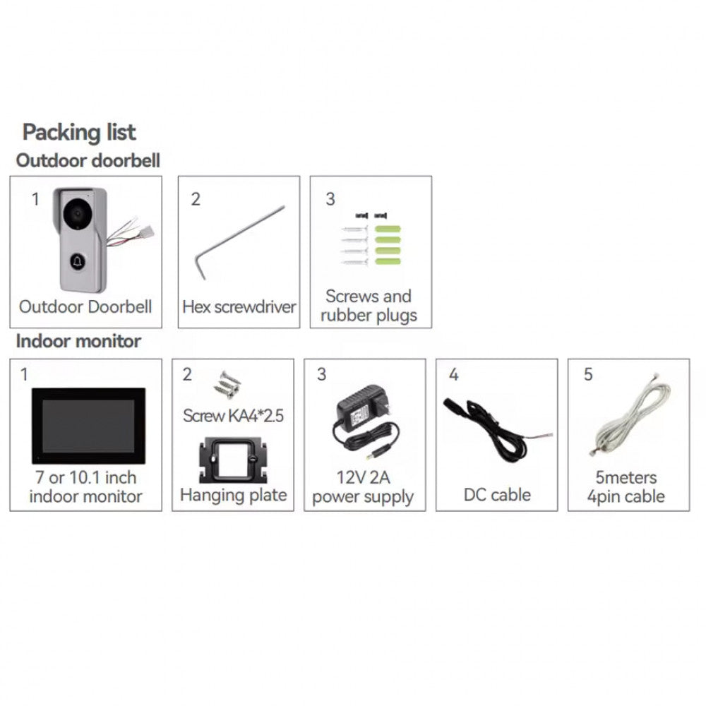 Power adapter: The external intercom and internal monitor use a common 12V 2A power adapter.