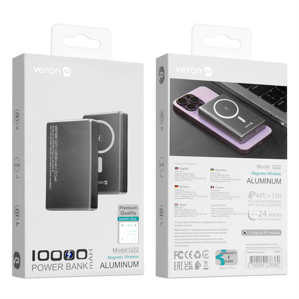 Magsafe Power Bank 10000 mAh | 22.5W — Veron Q22 with magnetic fast charging USB C