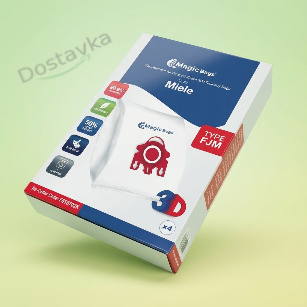 FJM Microfiber Dust Bag Set (4 pcs.) + Exhaust Filter for Miele Vacuum Cleaner, Red | Manufacturer's Number: 41996571D