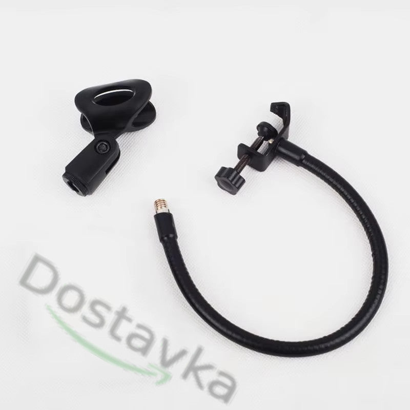 Desktop flexible adjustable microphone holder with grip (clamp) for musicians, bloggers and tiktokers. Mount to a stand or table (shelf) up to 30 mm thick