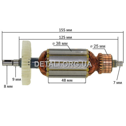 Electric motor armature (rotor) of an angle grinder (angle grinder) grinder Sturm AG9012 (155*38 key 8 mm)