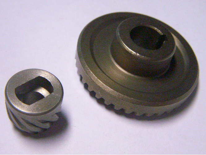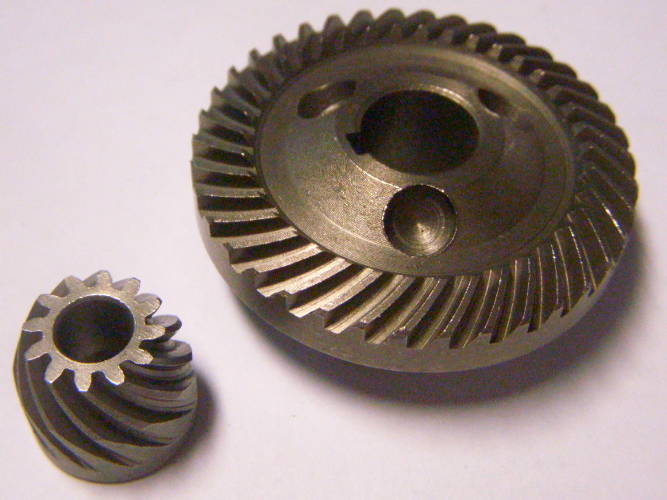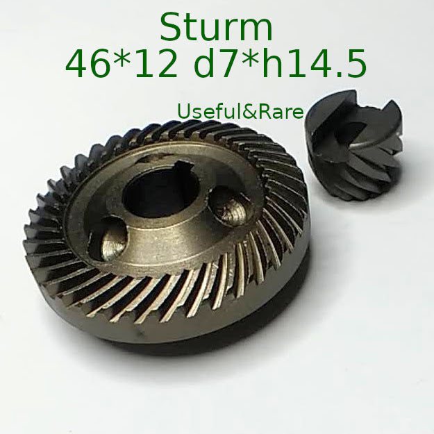 Sturm Angle grinder bevel gear pair d46(outer) x 12(inner) mm on a key and pinion h14.5 x d7(inner) mm with fixation crosscut 7 mm, compatible with some grinders with 125 mm cutting disc like Sturm, Rebir Profi