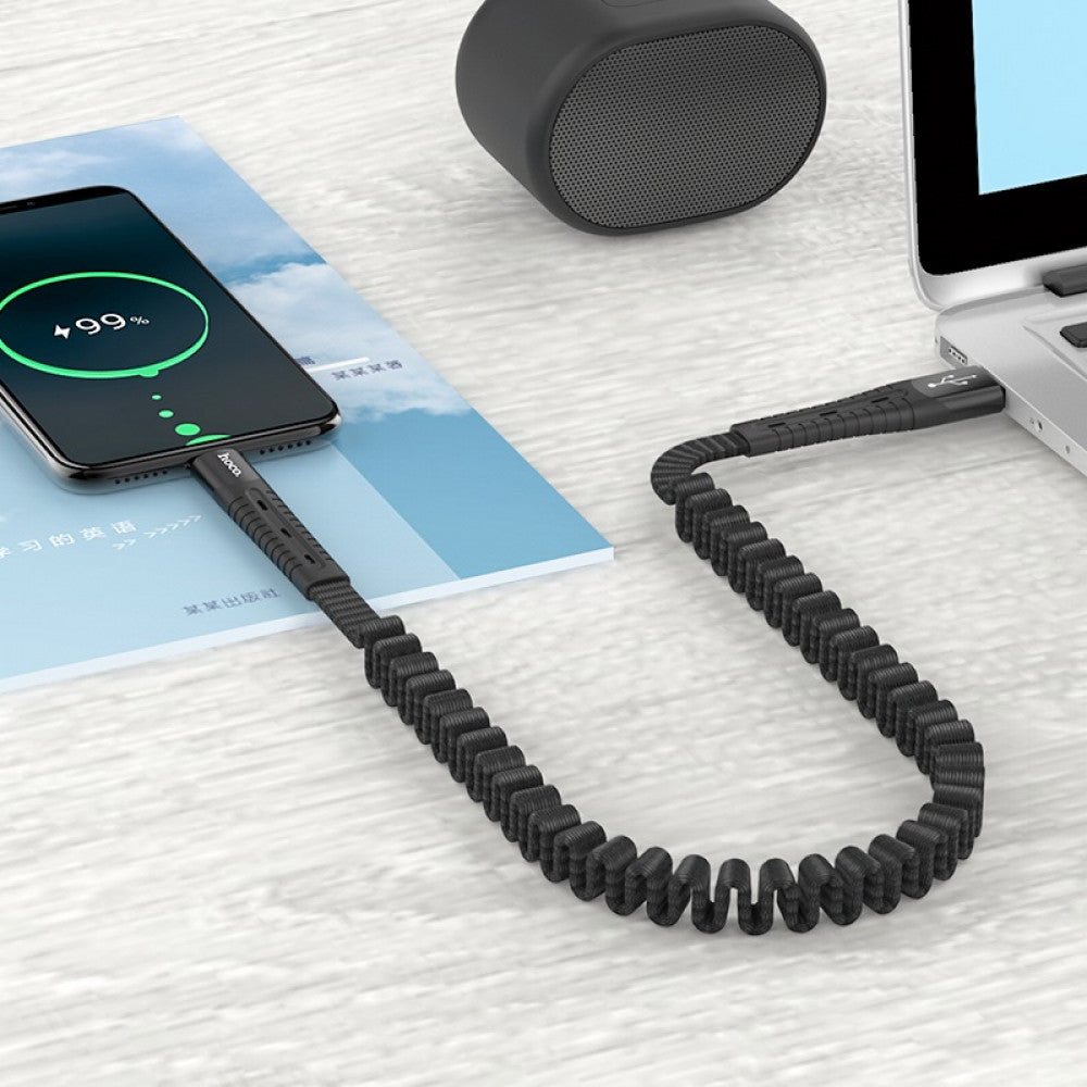 USB-cord Hoco U78 Cotton Treasure Elastic Lightning Cable refers to the type of wire charging, sync-charging. It is ideal for phones, tablets, MP3 players, smart watches, when you need to synchronize the device and PC or laptop. But this does not mean that you will not be able to connect the USB-cable to other devices, if there are appropriate connectors, this will not entail any problems. In addition, it is almost indispensable when charging the battery.