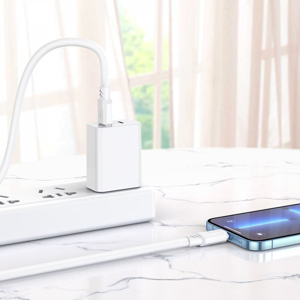 Borofone BX81 cable. Simple, practical, inexpensive power and synchronization cable. The connection between devices is via USB – Lightning. Lightning connector for charging smartphones, tablets and other gadgets with a suitable input. The cable has an elastic silicone coating and copper wire at the base, which gives high flexibility and ensures a longer service life.