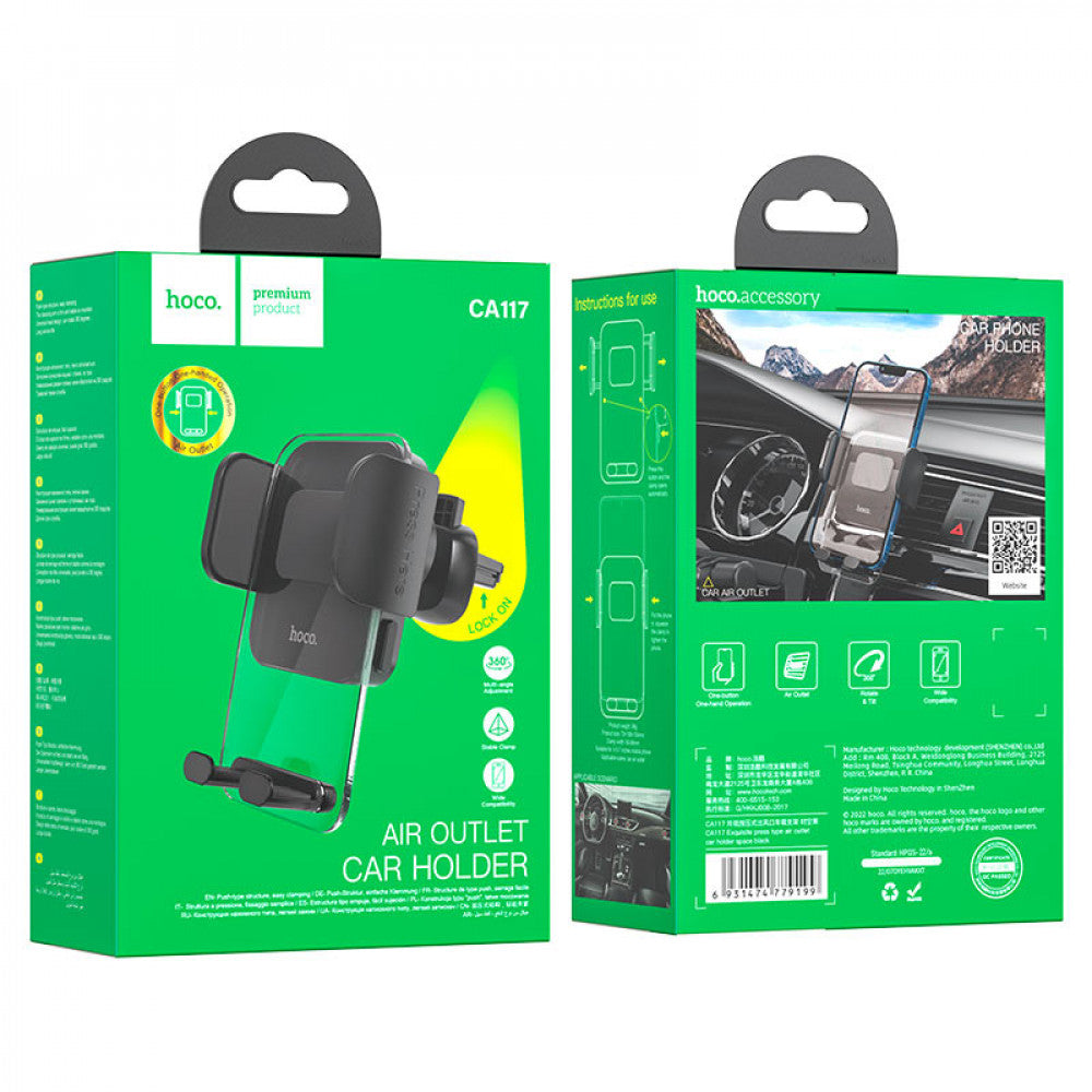 Car magnetic holder Hoco CA117, high-quality and reliable car holder with a powerful magnet that allows you to attach your smartphone in a convenient position without any risks, fits all phone models. The metal flat plate is glued to the back of the smartphone or case with double-sided tape and is magnetized to the holder. The holder itself is attached to any flat surface using double-sided tape. The mount is adjustable for tilt in any direction, and also rotates 360 degrees. The holder is convenient because it takes up virtually no space, stylish and compact - fits perfectly into any interior. A unique holder that has the advantage of miniature size and magnetic mount.