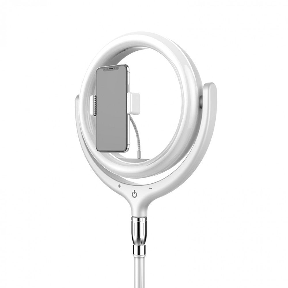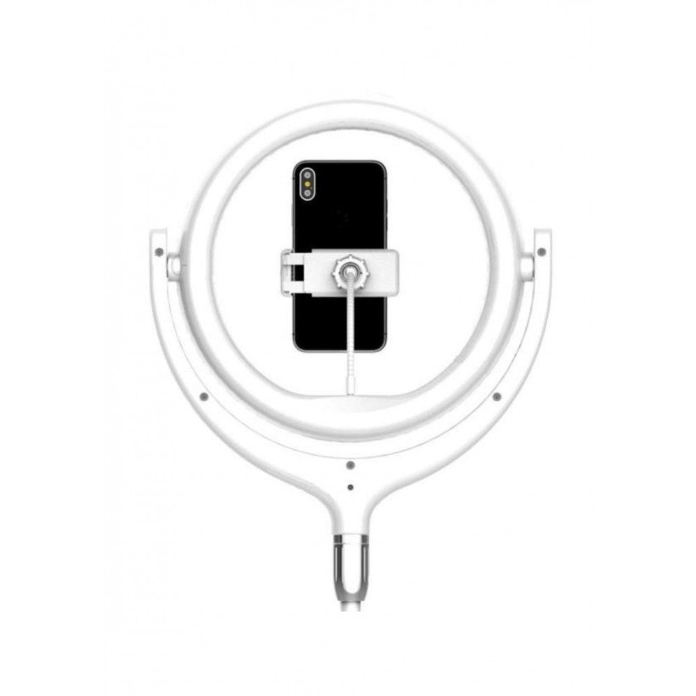 A ring lamp with a smartphone holder and a remote control is designed to set up the right light for photo sessions (for face photos - makeup, hair, etc.). Depending on the selected mode (3 backlight modes), the LEDs will illuminate your face softly and carefully, or give a studio backlight, or give lighting similar to bright spotlights. A ring lamp with a phone holder is perfect for selfies. 3 backlight modes - warm, cold, mixed (adjusted by touch control and remote control). On the back of the ring there are 4 touch buttons that are responsible for control: the power button, the light mode selection button, and two brightness adjustment buttons. This ring can also be controlled using the remote control, which is included (batteries are not included). Thanks to the remote control, you can select the light mode and brightness level from a distance, which makes adjusting the light very convenient.