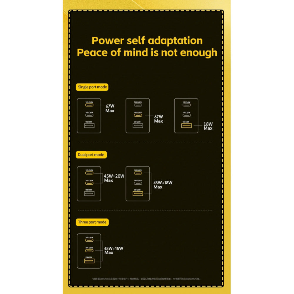 High power: 67W to efficiently charge three devices simultaneously.