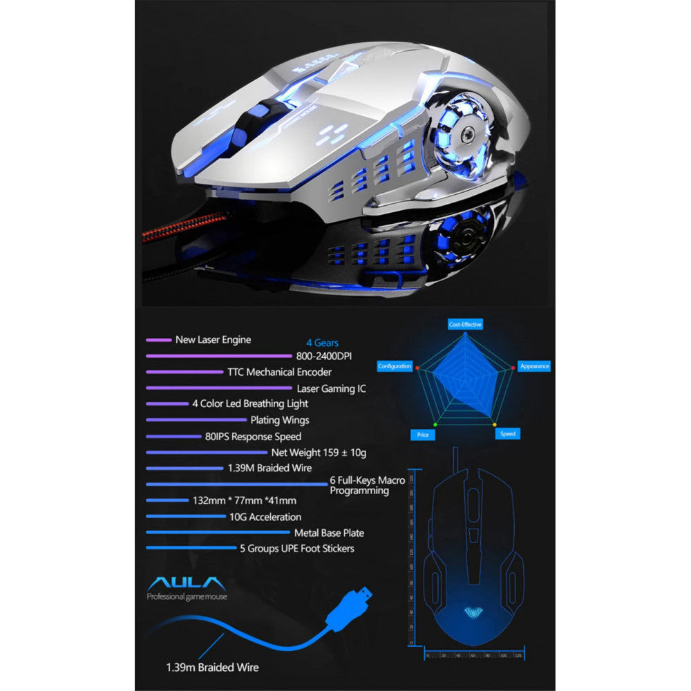 4 LED breathing lights in different colors: blue, pink, purple, red