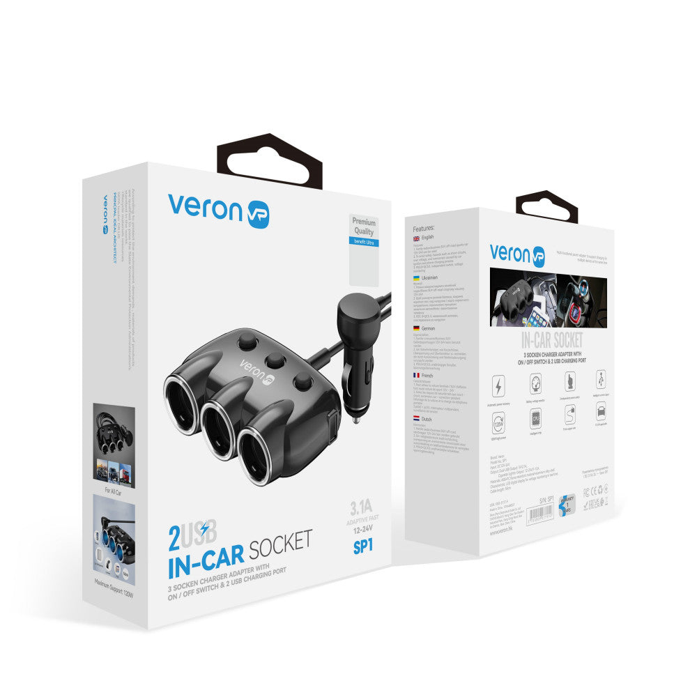 The extension cord has three standard sockets (cigarette lighters) with the ability to connect various devices such as car chargers, tire pumps, portable compressors and other electronic devices.