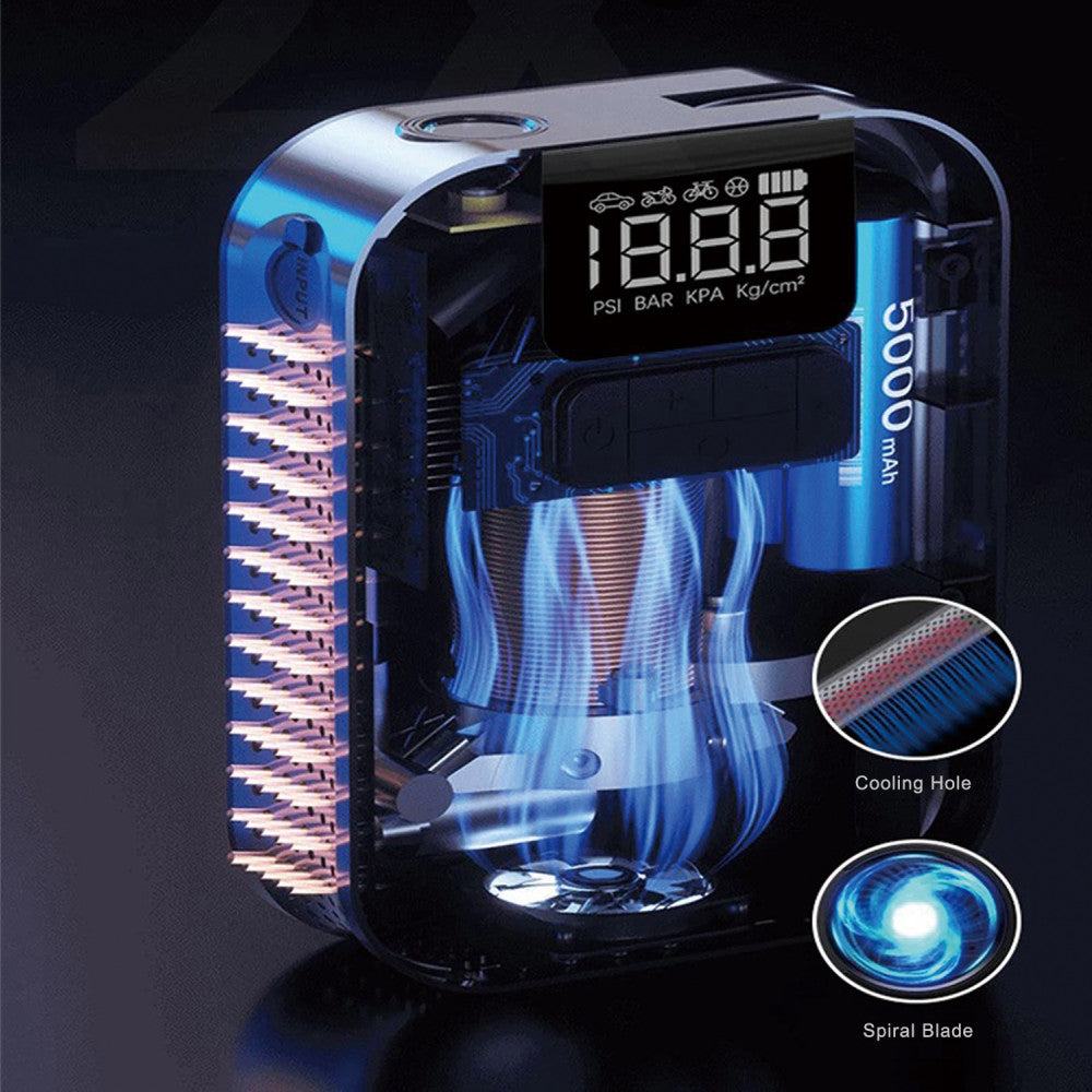 Material: ABS + silicone + inner braided inflatable hose + aluminum alloy. ¶Maximum range: 215/55/R18 car tires; Battery capacity: 2500mAh; Type-C input interface, charging for about 4 hours. ¶DC brushed motor; 22 cylinder engine; maximum pressure 3.5bar. ¶Supports working modes for cars, motorcycles, bicycles and basketballs (not suitable for large trucks). ¶Package size: 190 * 123 * 58mm. Weight: 742 grams.