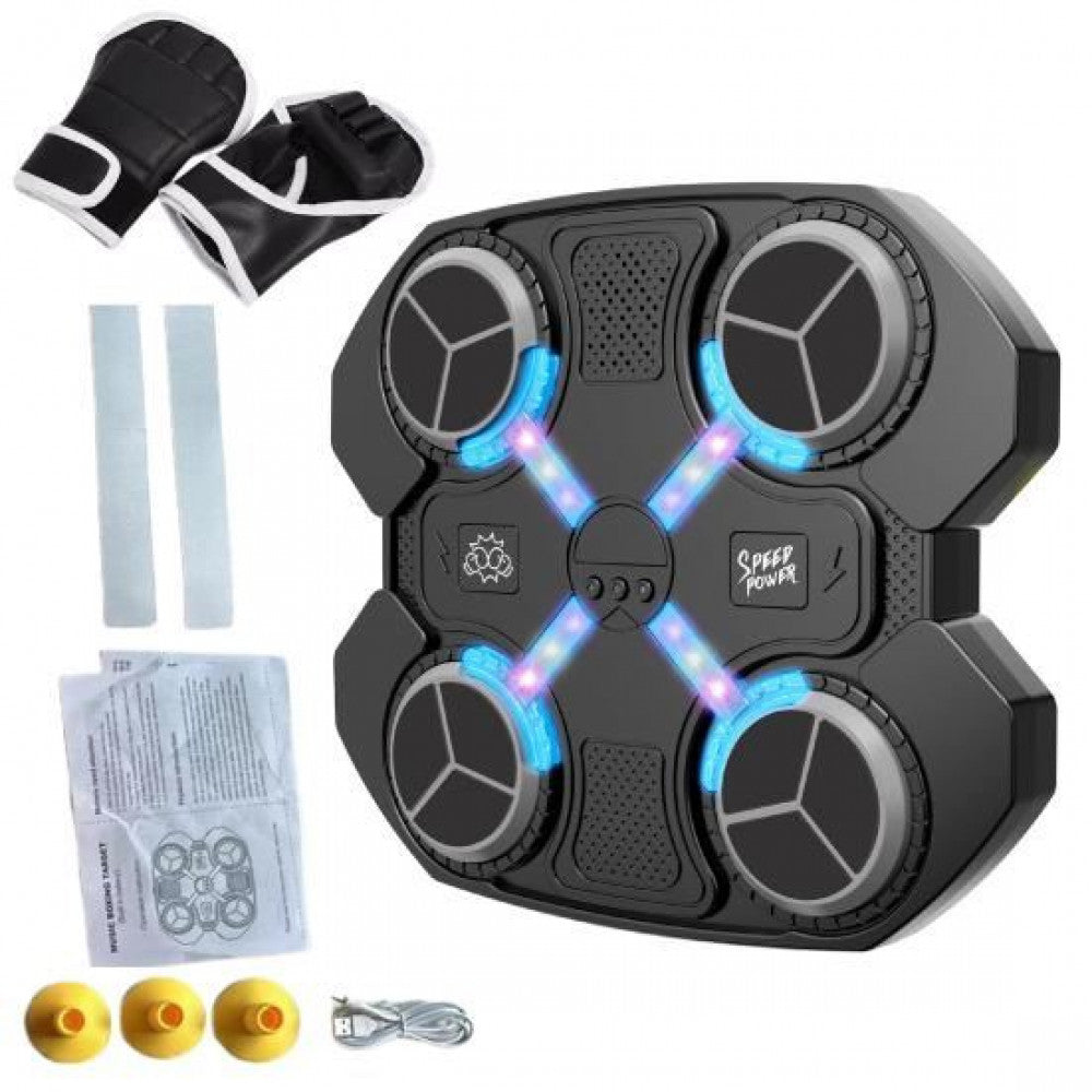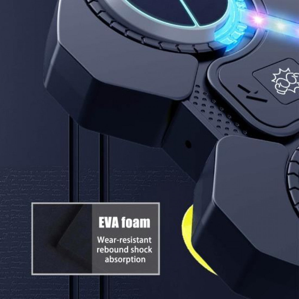 Name: Wall-mounted boxing trainer;¶• Material: PVC, ABS + foam + electronic components;¶• Power: USB;¶• Lithium battery: 3.7 V 500 mAh;¶• Backlight: Yes;¶• Age range: From 5 to 99 years old;¶• Connection to the target: Bluetooth;¶• Speed control: Yes;¶• Number of speeds: 3;¶• Mount: Wall-mounted, on suction cups;¶• Musical accompaniment: Yes;¶• Size: 32 x 27.5 x 3.5 cm;¶• Weight: 2 kg.