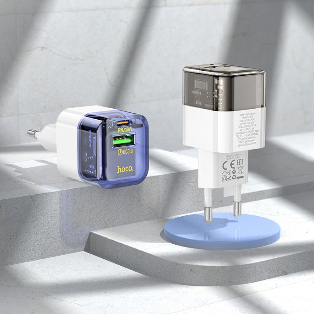 Output: Type-C: 30W (PD/QC/FCP/AFC); USB-A: 18W (QC/FCP/AFC); Type-C+USB-A combined: 5V/3A