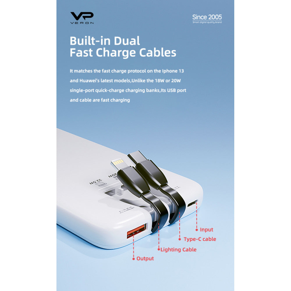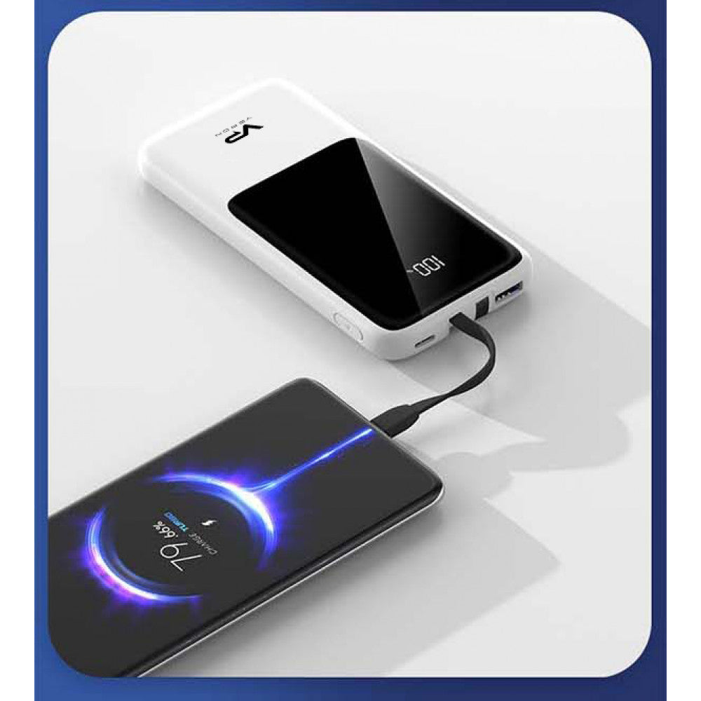 The capacity of the power bank reaches 10,000 mAh. 2 USB ports, which allow you to charge several devices at once. The case material is plastic. Power Bank Veron 10000mAh has an average weight and comfortable dimensions, which allows you to easily carry it in your bag.